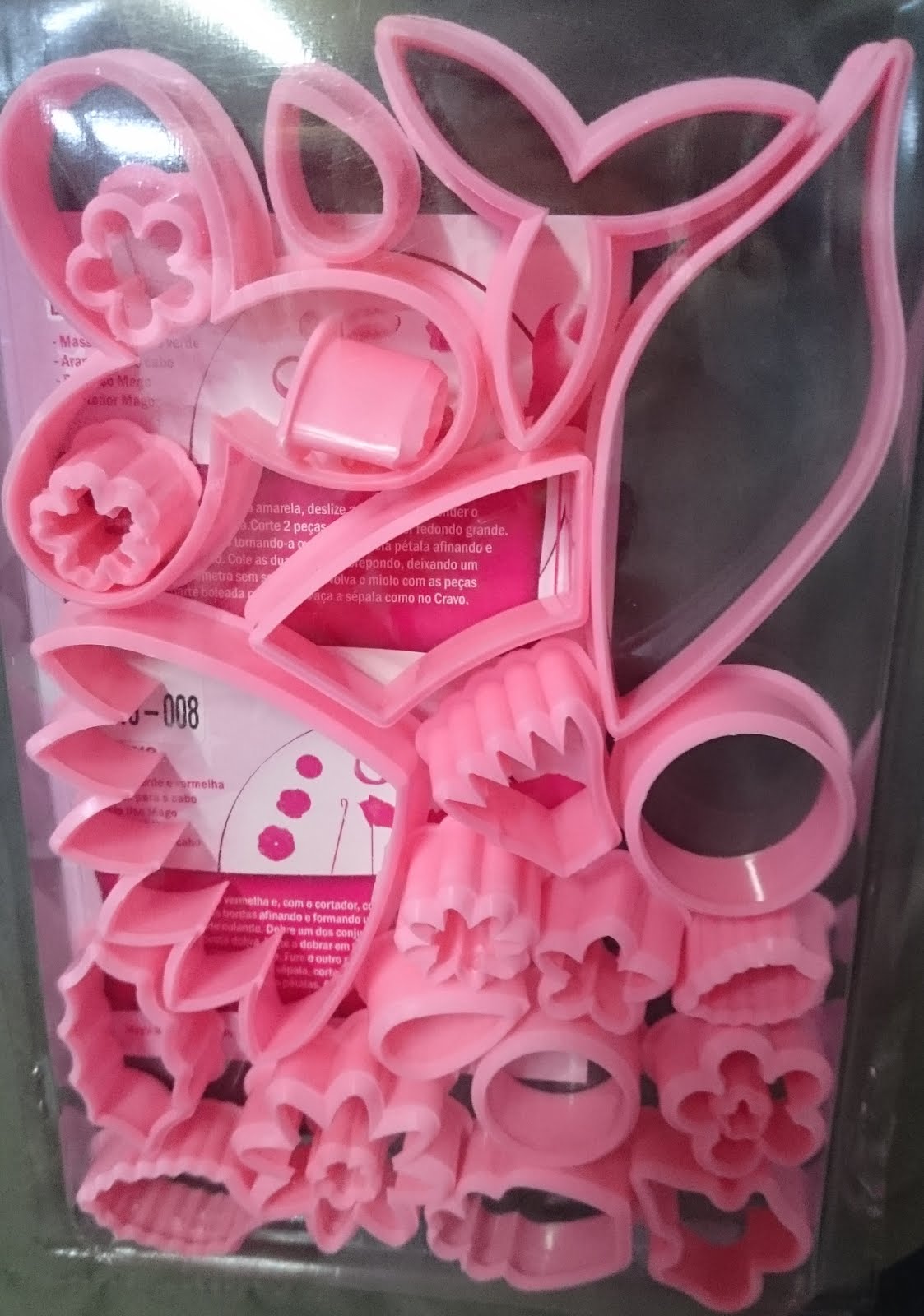Para recortar as pétalas utilizei um EJETOR DE PÉTALAS. Porém, pode ser usado CORTADORES CIRCULARES, que são encontrados em casas de artigos para festas, como o da foto abaixo.